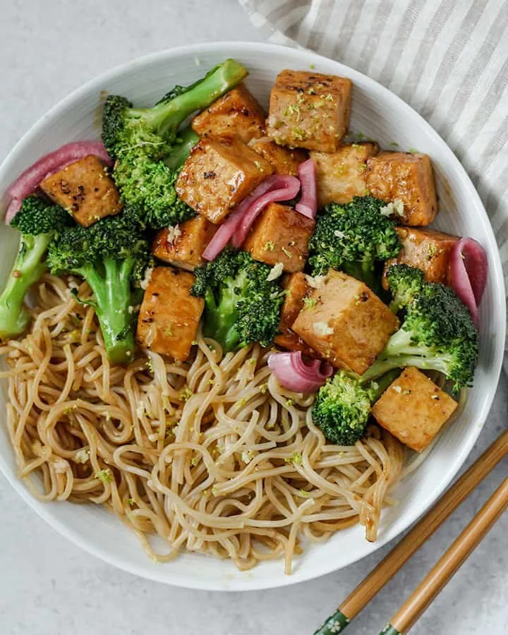 Add the cooked tofu back to the pan with the broccoli and stir well to coat. Cook for an additional 1-2 mins for the flavours to meld together. Sprinkle over the reserved green parts of the spring onions, remove from the heat and serve with cooked rice or noodles.