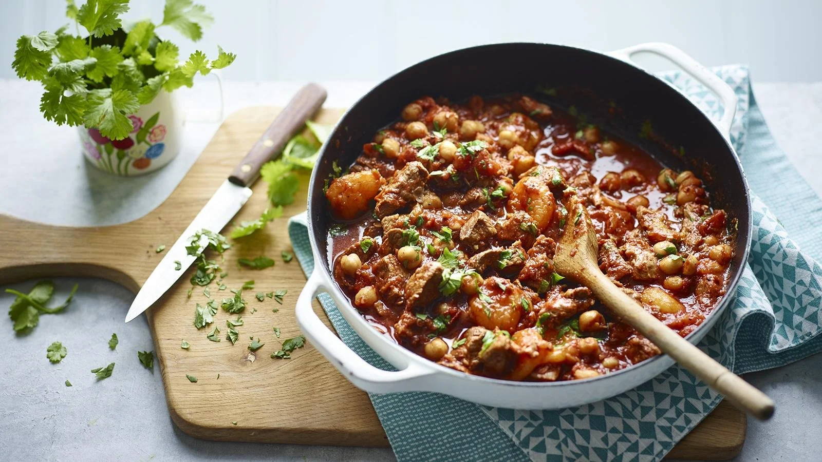 Stir in the chickpeas and apricots, if using, and bake for 30–45 minutes, or until the lamb is tender.